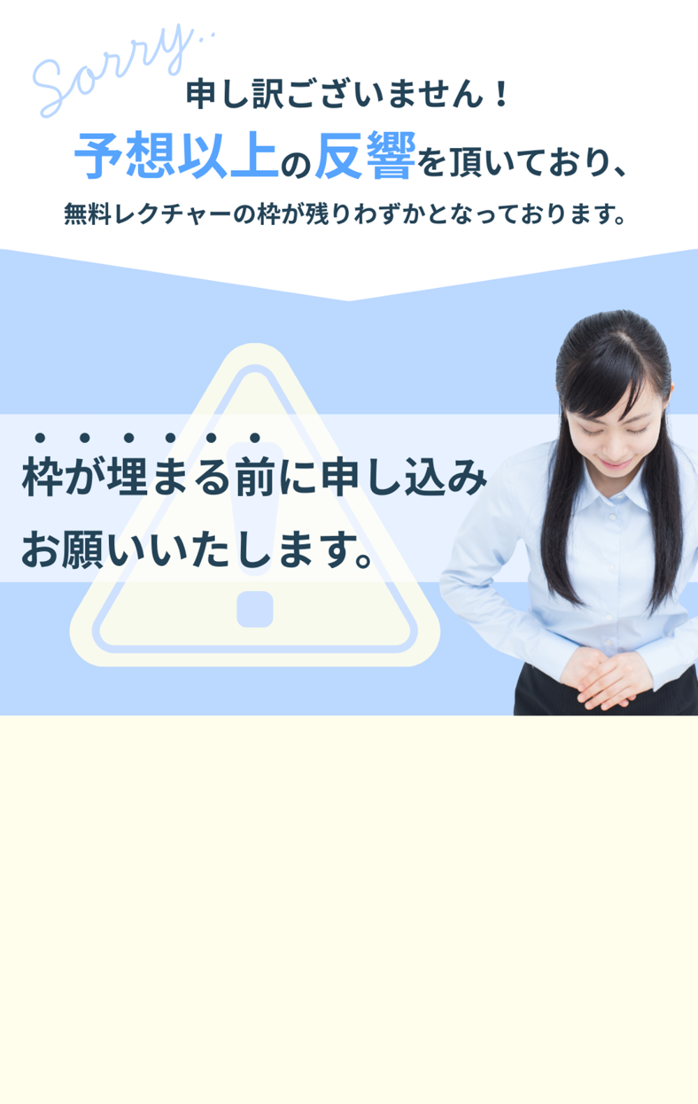 A 無料枠を確保して個別で行う為、当日のキャンセルはご遠慮下さい。どうしても都合が合わない場合は分かり次第ご連絡をお願いいたします。